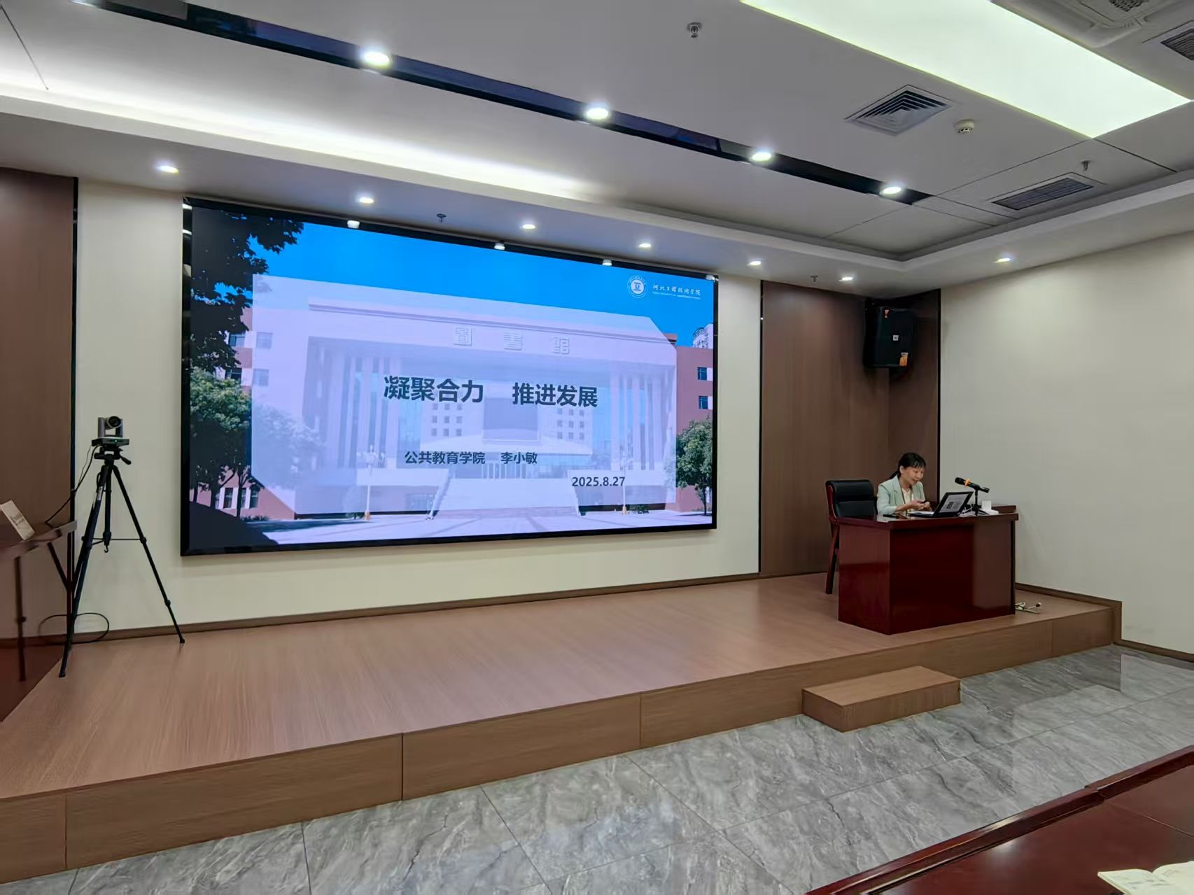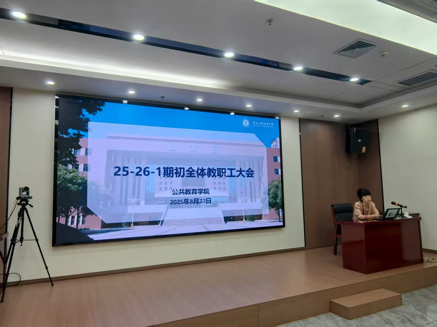 为统筹部署新学期各项工作,明确发展目标与重点任务,2025年8月27日上午,beat365中国官网在会议中心第一会议室召开2025-2026学年第一学期全体教职工大会。经理刘翠焕、副经理李小敏、赵媛媛及全体教师参会。