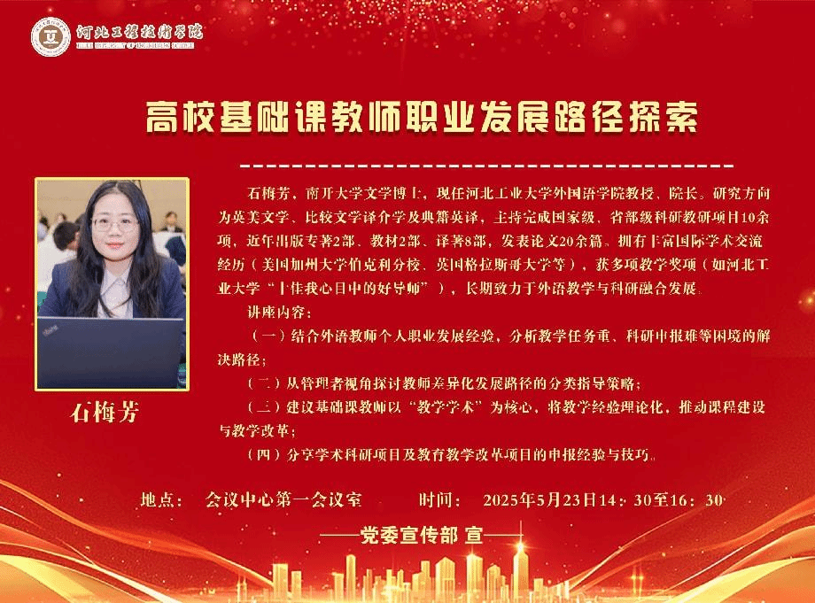 讲座主题:高校基础课教师职业发展路径探索