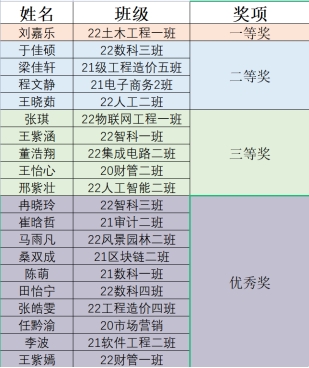 本次比赛获奖名单