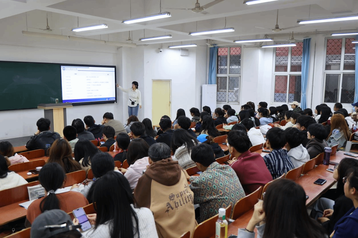 讲座伊始,李玉冰老师带领同学们初步了解四级考试的考试时间、题型分配以及做题顺序等。接着,李玉冰老师对写作、听力、阅读和翻译四大题型进行了深入浅出的技巧分享,并结合历年真题加以实践磨练。李玉冰老师重点强调了提升基础词汇和语法以及高效利用真题的方法。李玉冰老师讲课方式幽默风趣,大大激发了同学们的学习热情,同学们对四级备考策略有了更直观深入地理解,也对四级考试增强了信心。最后,李玉冰老师还为大家详细讲解了四级备考时间规划,引导同学们制定合理的学习计划,设定明确的学习目标,进行高效学习。