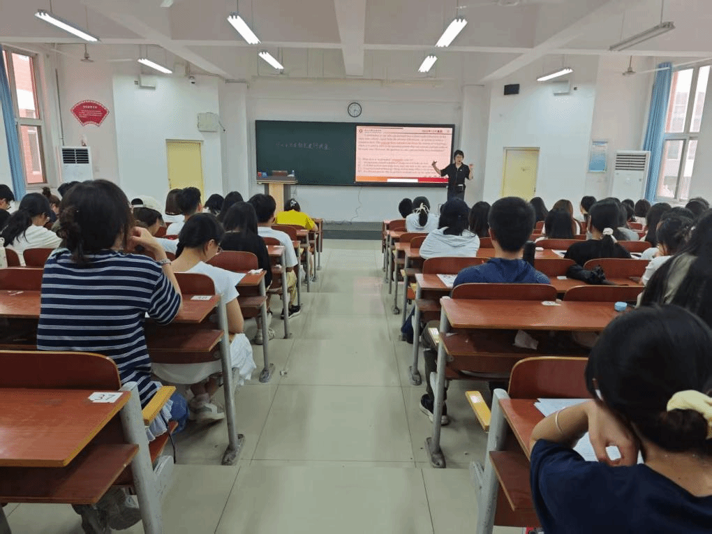 讲座伊始,李玉冰老师迅速切入主题,针对四级考试阅读部分的A、B、C三大板块,逐一深入剖析了它们的特点与难点所在。在讲解过程中,她结合历年真题,深入浅出地为同学们传授实用的做题技巧,如快速定位关键信息、怎样通过上下文推测词义等。凭借丰富的教学经验,李玉冰老师为同学们精心规划了备考的时间线,从基础阶段的词汇积累与语法巩固,到强化阶段的真题演练与技巧精进,再到冲刺阶段的模拟测试与心态调整,每一步都给出了详尽且具有实操性的指导。同学们纷纷表示,李老师的讲解让他们对四级备考有了更清晰的规划,不再感到迷茫和焦虑。