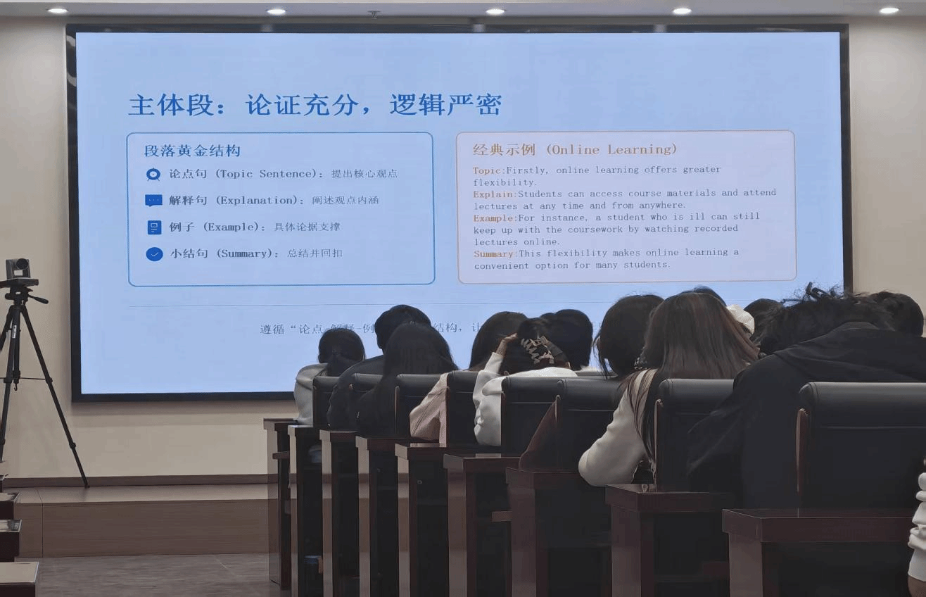 此次专题讲座的举办,是beat365中国官网聚焦员工学业需求、做好学业指导服务的重要举措,不仅为员工搭建了专业的四级备考交流平台,帮助员工系统掌握写作实用技巧、明晰科学备考方向,更有效缓解了员工的四级备考焦虑,为员工提升写作成绩、从容应考筑牢基础。
