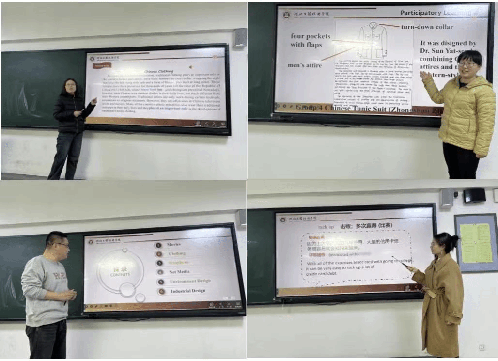 在本次活动中,教研室每一位教师精心打磨,带来了精彩纷呈的教学示范。马丽娜老师的产出式教学有效提高了课堂教学效率;张鑫老师的词汇教学法高效助力员工拓展英语词汇;赖信含老师将艺术生专业特长和英语教学内容进行了巧妙融合;樊晓静老师严谨连贯的教学设计为英语课堂教学活动提供了新思路。在每一场教学展示的热烈氛围中,教师们踊跃参与讨论,各抒高见,相互借鉴,携手探索更加适合艺术类员工的英语教学新策略。